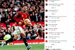 本场比赛B费传射建功,赛后他也在个人社媒晒出庆祝照片,配文写道:“红魔信念!”本场比赛接B费助攻破门的舍什科也评论道:“感谢兄弟。”