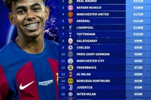 本赛季五大联赛U18球员各项赛事参与进球榜:亚马尔29球遥遥领先
